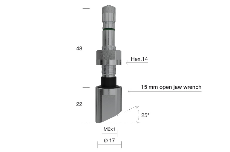 TPMS Alcoa Ventil 22-48xØ9.7mm Sensor vinkel 25°